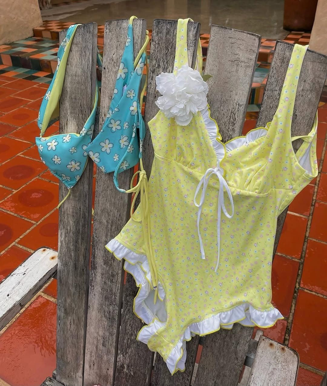 'Serenity Blue' - Floral Ruffle Swimsuit