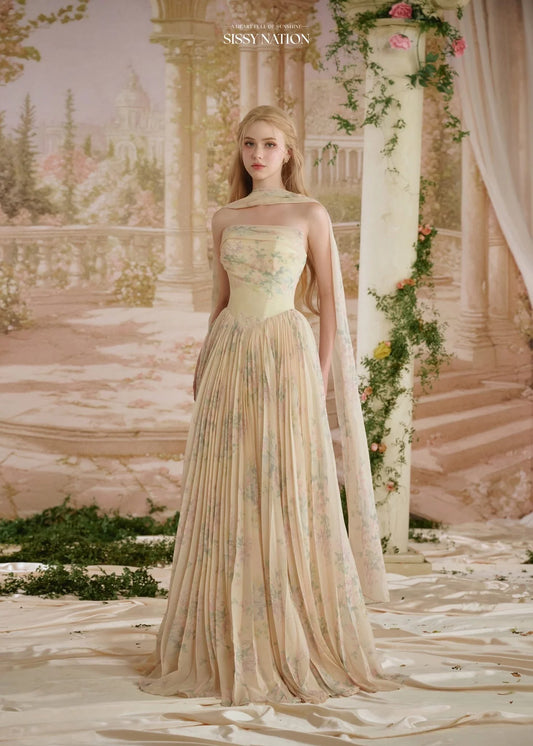 [品牌授权] Sissy Nation Yellow Amelia Corset Pleated Maxi Dress