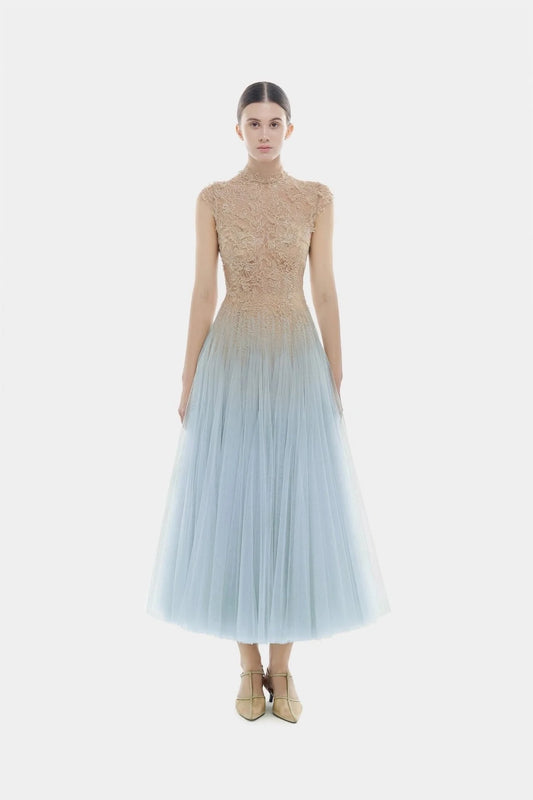 [品牌授权] MONTSAND Blue Ombré Cut-Out Lace Midi Dress
