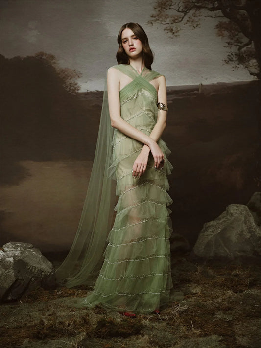 [品牌授权] LINH PHUNG Green Sabrina Maxi Dress