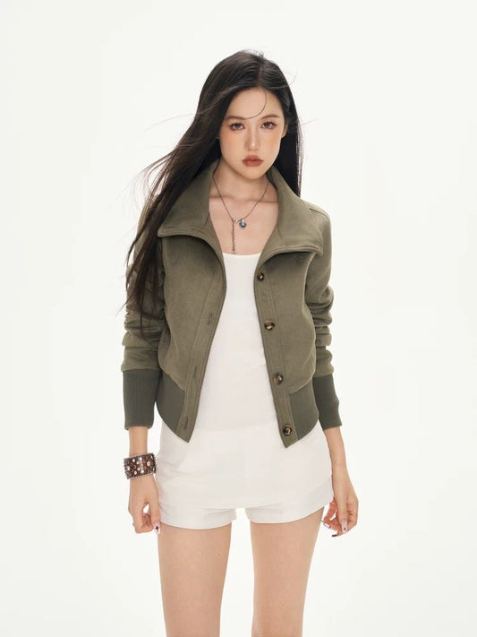 Cropped Suede-Look Jacket – Waist-Defined Slim Fit