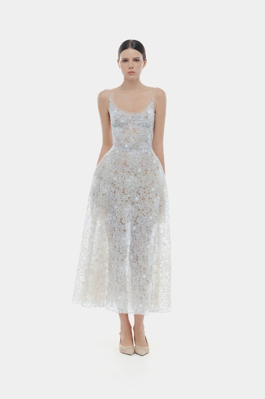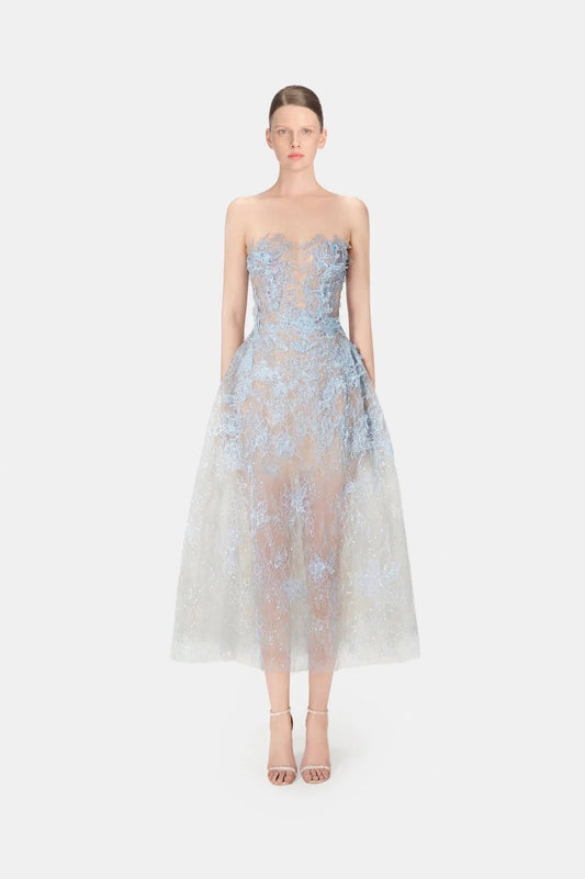 [品牌授权] MONTSAND Blue Flower Lace Midi Dress