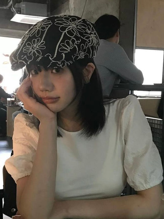 Embroidered Floral Beret
