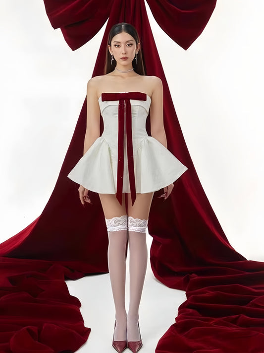 Elegant Velvet Bow Strapless Mini Dress
