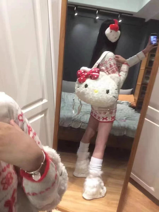 HELLO KITTY BP智秀同款 Hello Kitty Mascot Plush with Heart-Shaped Metal Charm | Kawaii Sanrio Bag Accessory