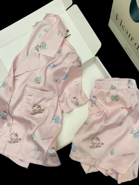 Hello Kitty Surfing Pajama Set - Brown Short Sleeve