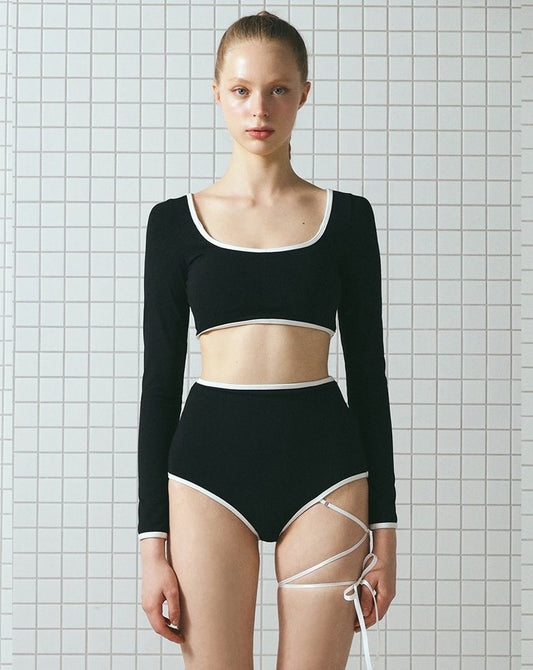 LUNE Long-Sleeve & Shorts 2-Piece Tie-Up Swimsuit Set