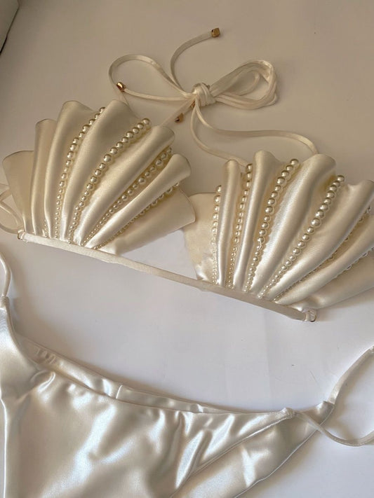 Luxe Pearl Shell Push-Up Bikini – Mermaid-Inspired Beach Set