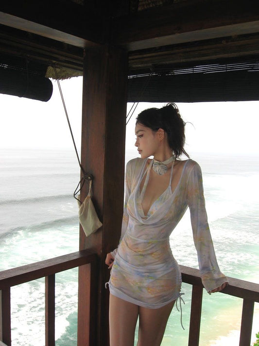 Mermaid and the net. - Bikini Three-piece Set with Net Skirt