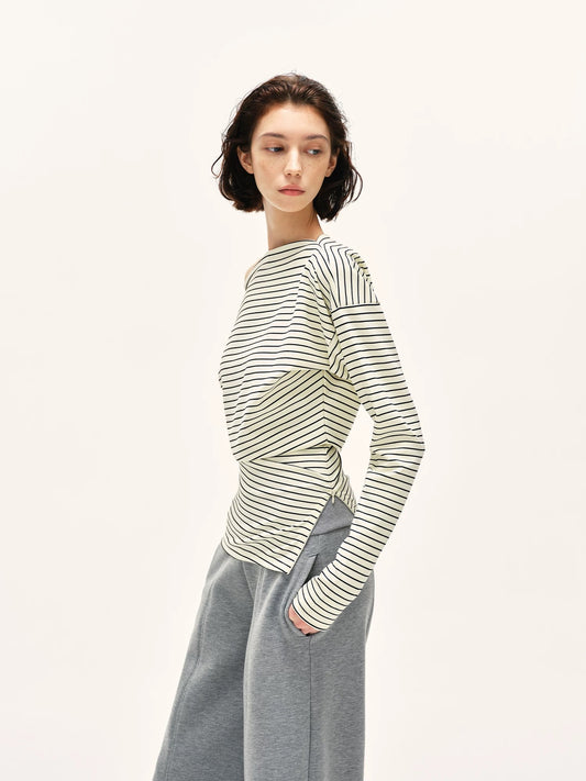 Off-Shoulder Black & White Striped Top – Soft Touch, Y2K Baddie Style