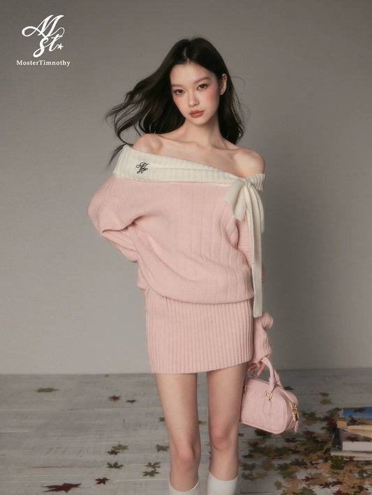 Off-Shoulder Striped Ribbed Knit Top – Baby Blue