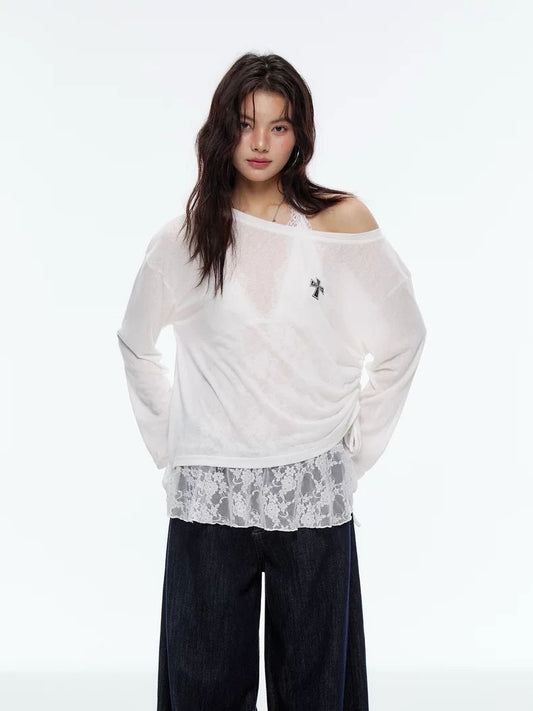 Off-Shoulder Lace Long Sleeve Maxi Dress
