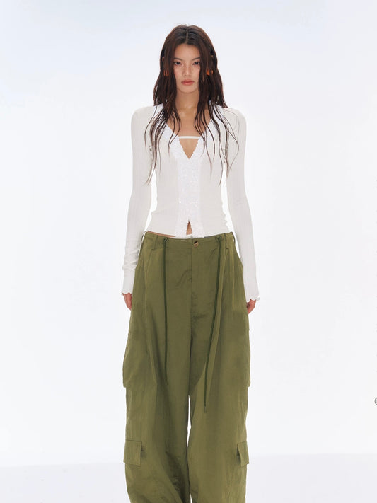 Sexy Chic Slim Fit Sequin-Embellished Patchwork Knit Long Sleeve Top