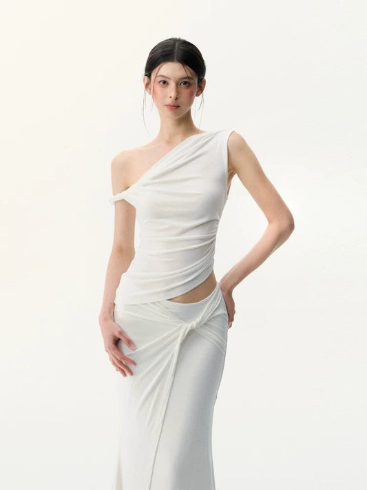 Sculpted Poise - White One-Shoulder Knit Set