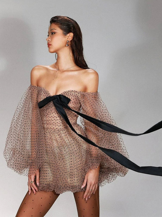 Sheer Polka Dot Bow Dress