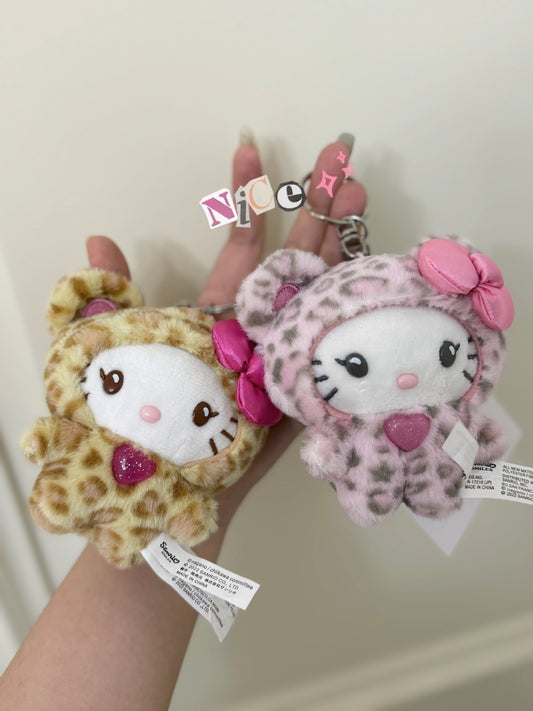 豹纹Hello Kitty x ヒョウ柄 Hello Kitty Pink & Brown Leopard Print Charm | Kawaii Sanrio Keychain | Wild Style Bag Accessory