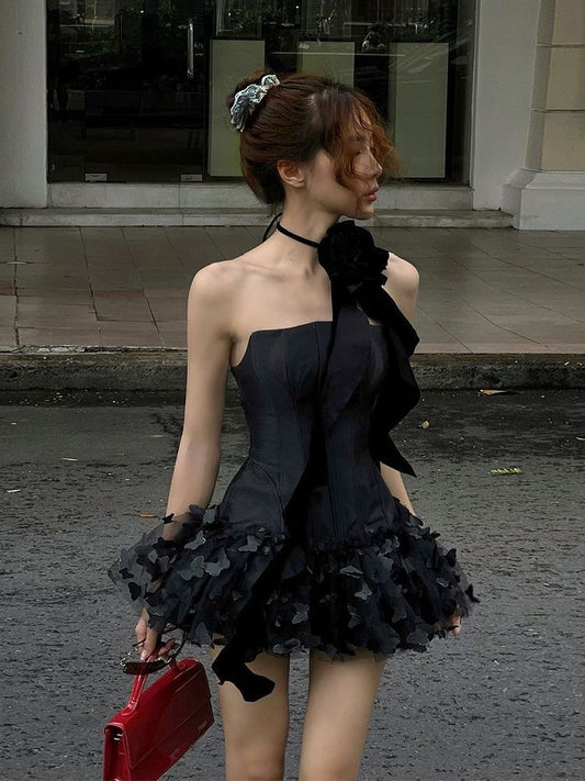 Black Rose Bandeau Bikini & Lace Skirt Set