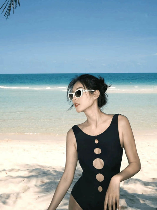 Blue Honolulu - Vintage Style Hollow One-piece Swimsuit