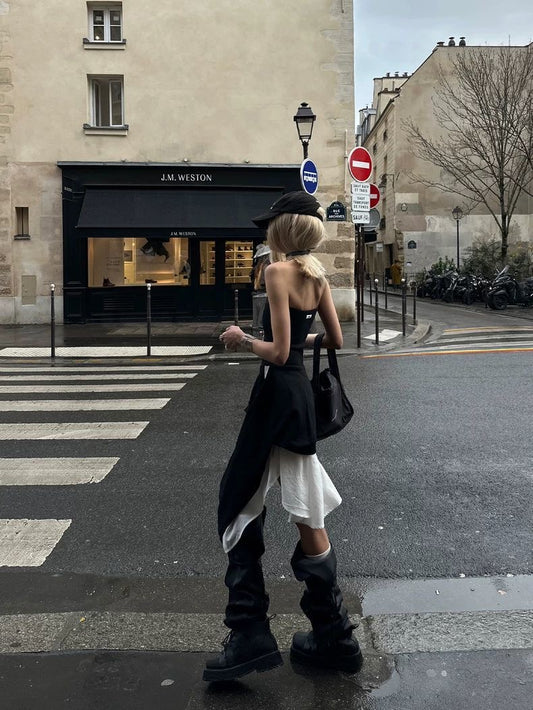 Black Off-Shoulder Maxi Dress with Ribbon Straps