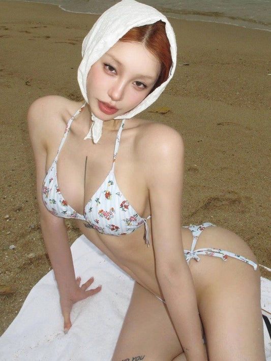 Fresh Butterfly Print 3-Piece Bikini Set – Pure Desire Aesthetic Swimwear for Small Bust