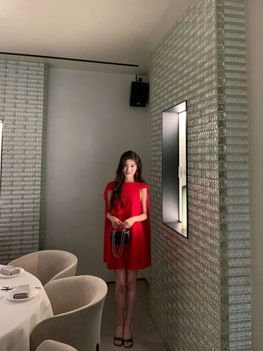 Crimson Drape Cape Dress