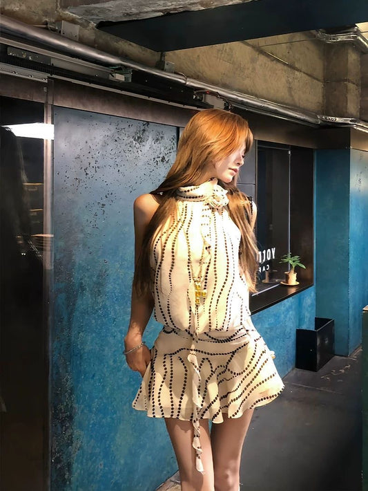 Kirakira.M Bare gray 2-piece set of hanging neck dress
