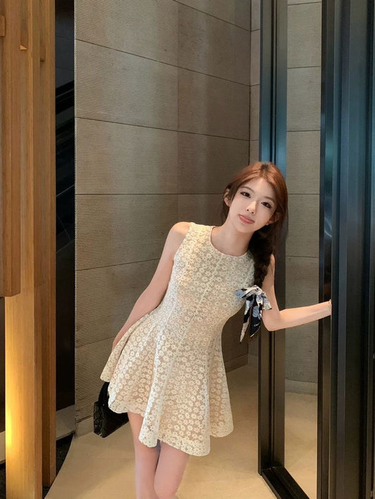 Sleeveless Floral Lace Mini Dress