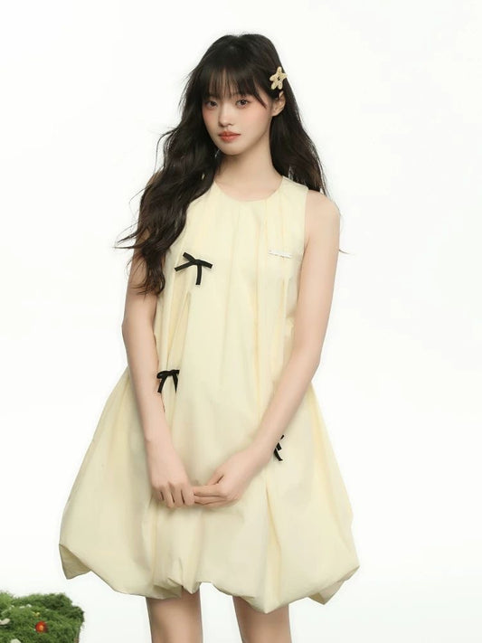 Mist Blue Contrast Bow Tie Pleated Cami Dress
