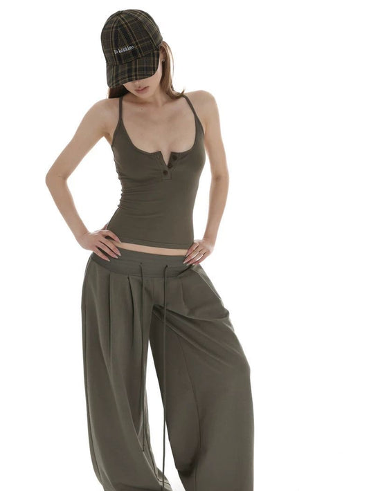 Vintage Y2K Pink Top & Cargo Pants Set – Streetwear Utility Chic