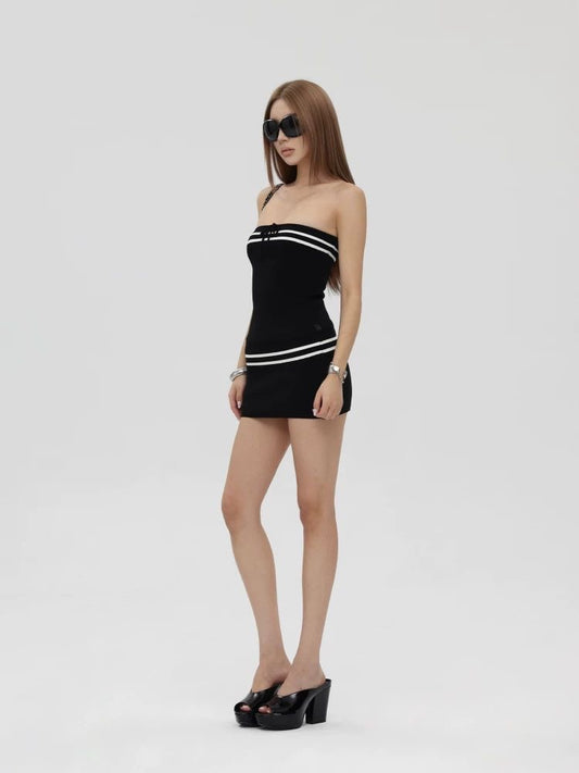 Preppy Striped Contrast Patchwork Polo Top & Mini Skirt Set – Miu-Inspired Two-Piece