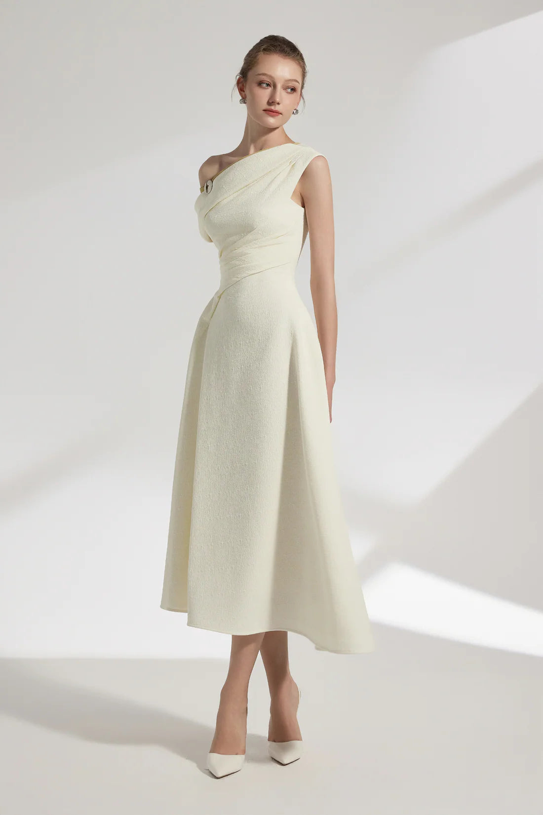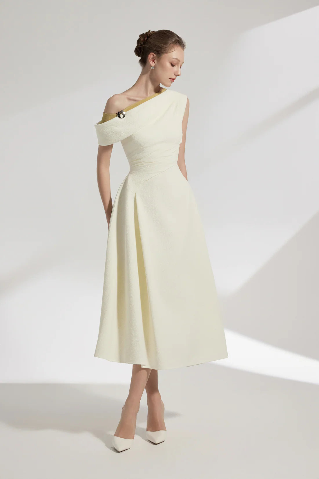 [品牌授权] BYDENIO Elan Two-tone Off-shoulder Midi Dress