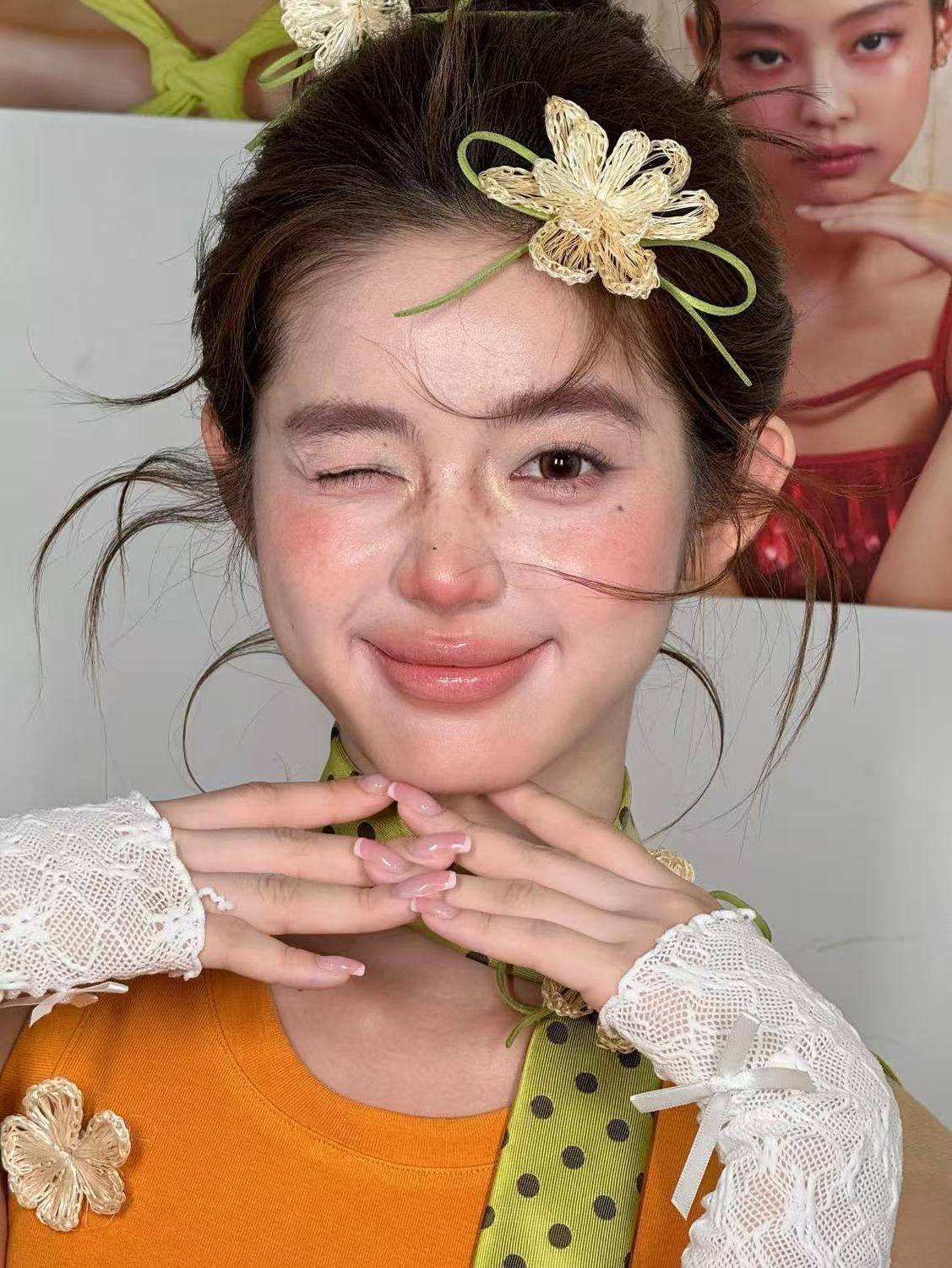 This handmade floral hair clip brings a soft vintage aesthetic to your hairstyle. Crafted with delicate woven flower details, the clip creates a romantic and feminine look perfect for everyday styling or special occasions.