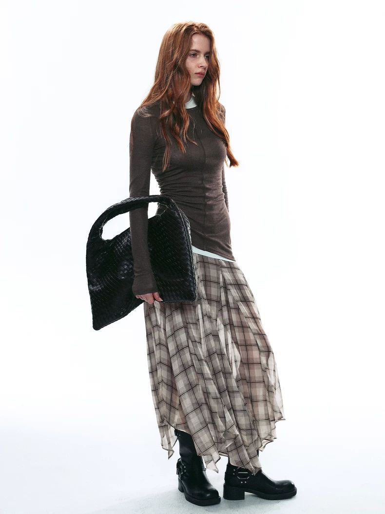 Scottish Plaid Asymmetrical Flow Midi Skirt